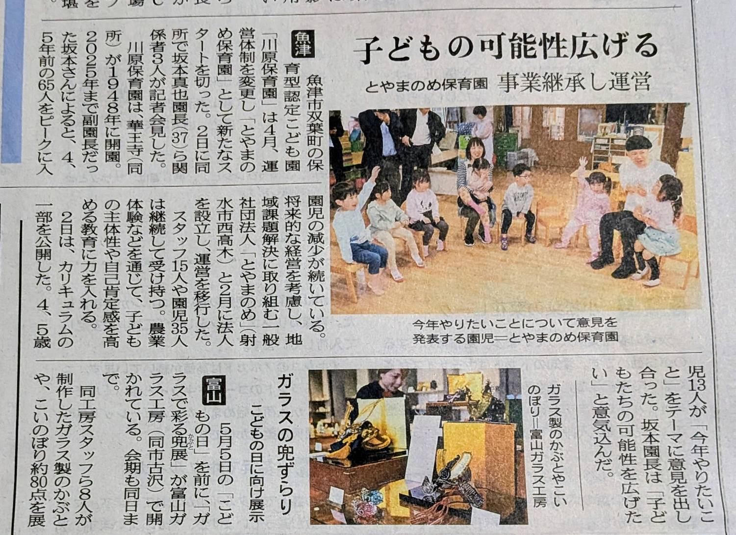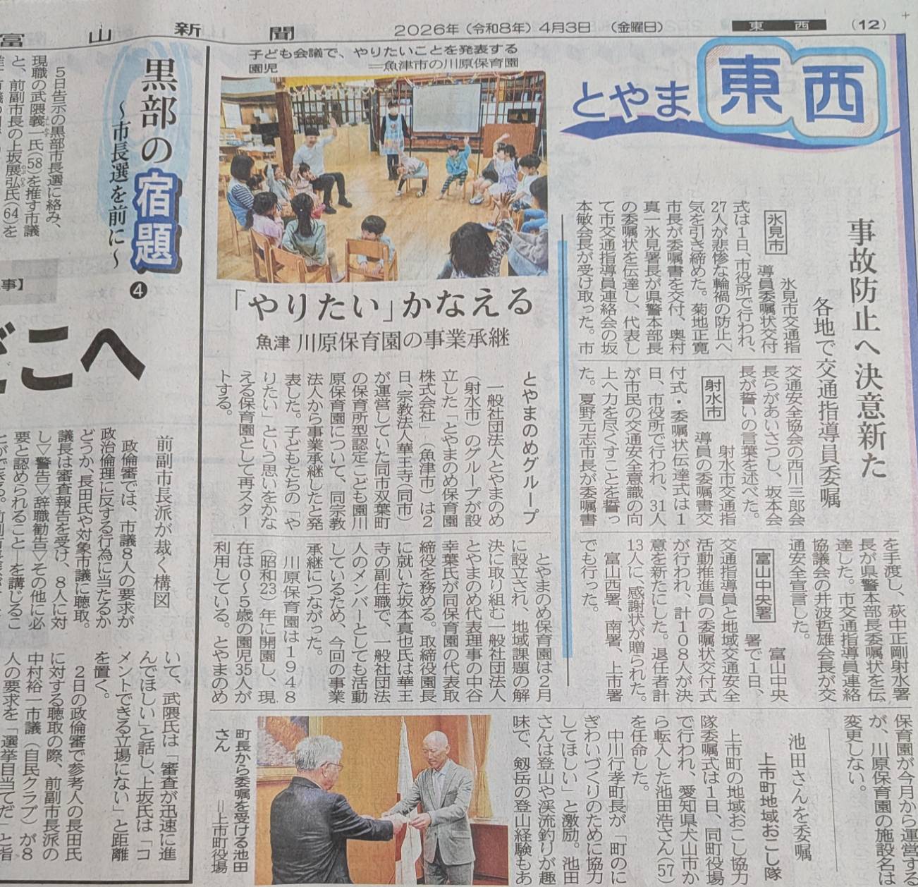 ・北日本新聞:4月3日掲載 ・富山新聞:4月3日掲載